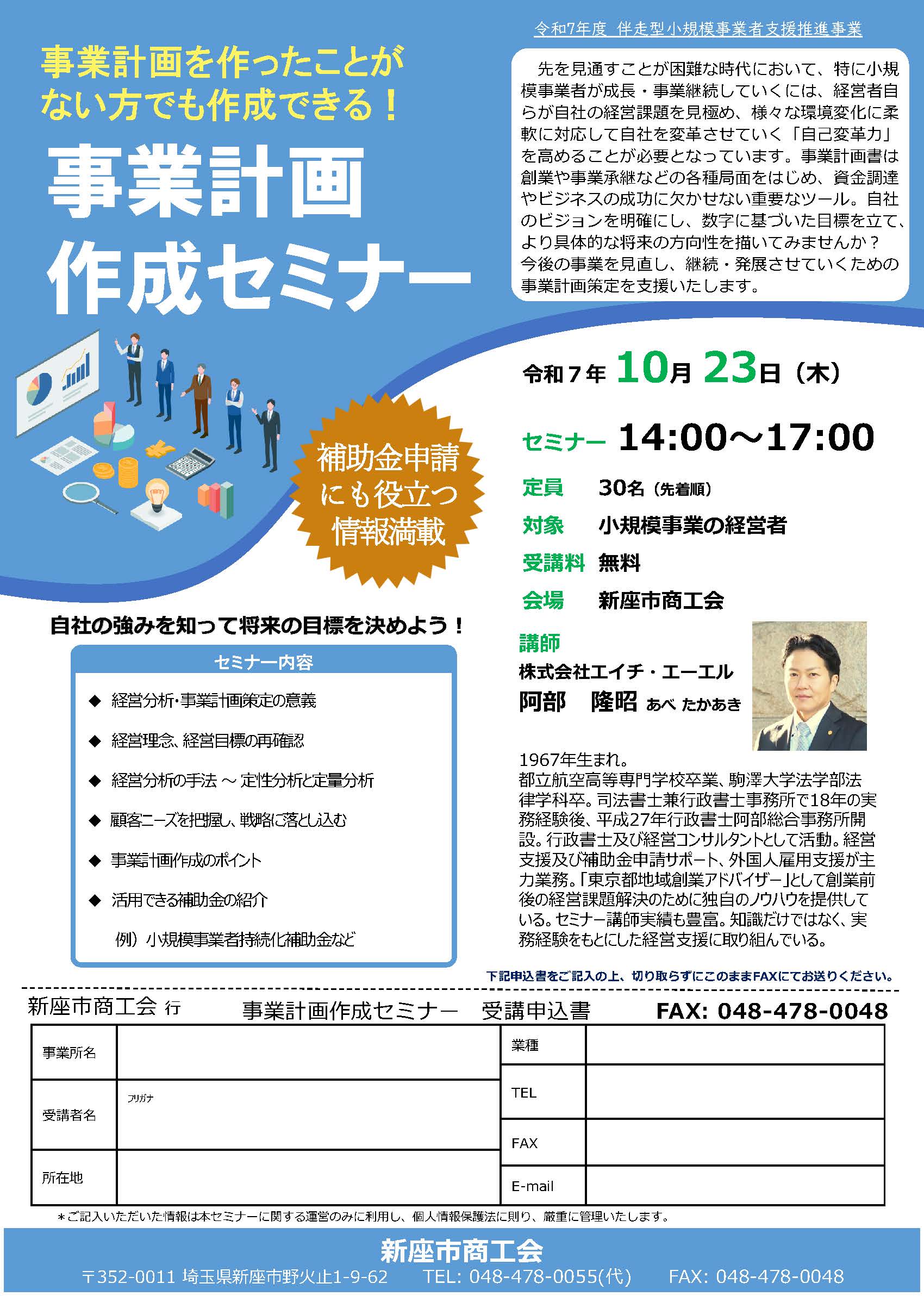 10月23日開催「事業計画作成セミナー」のご案内